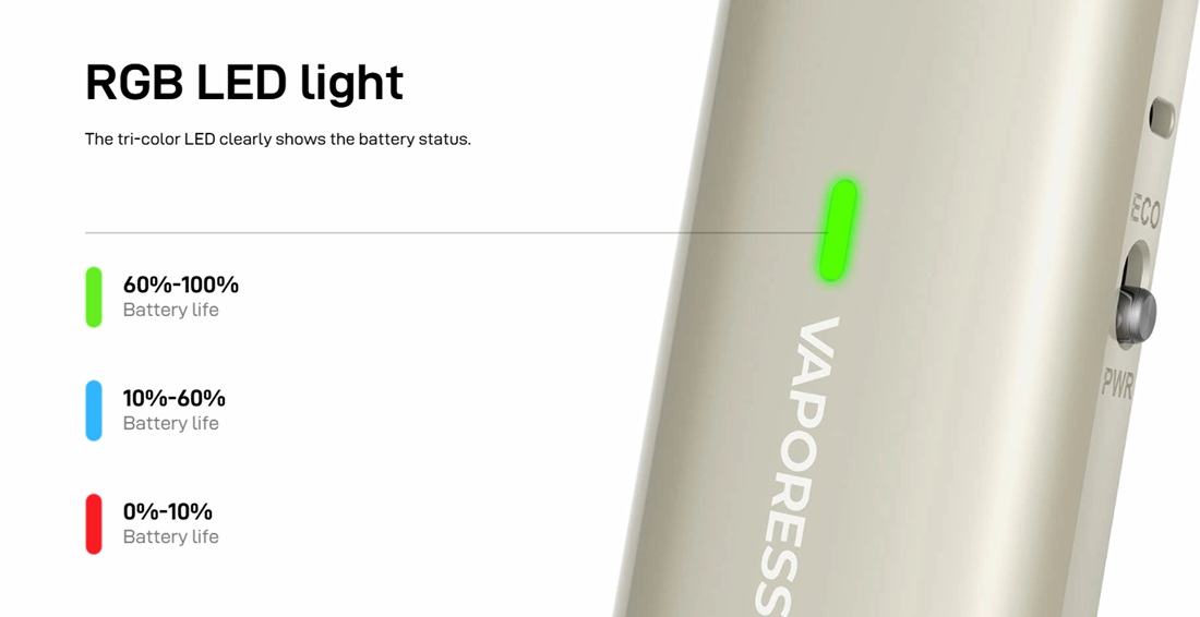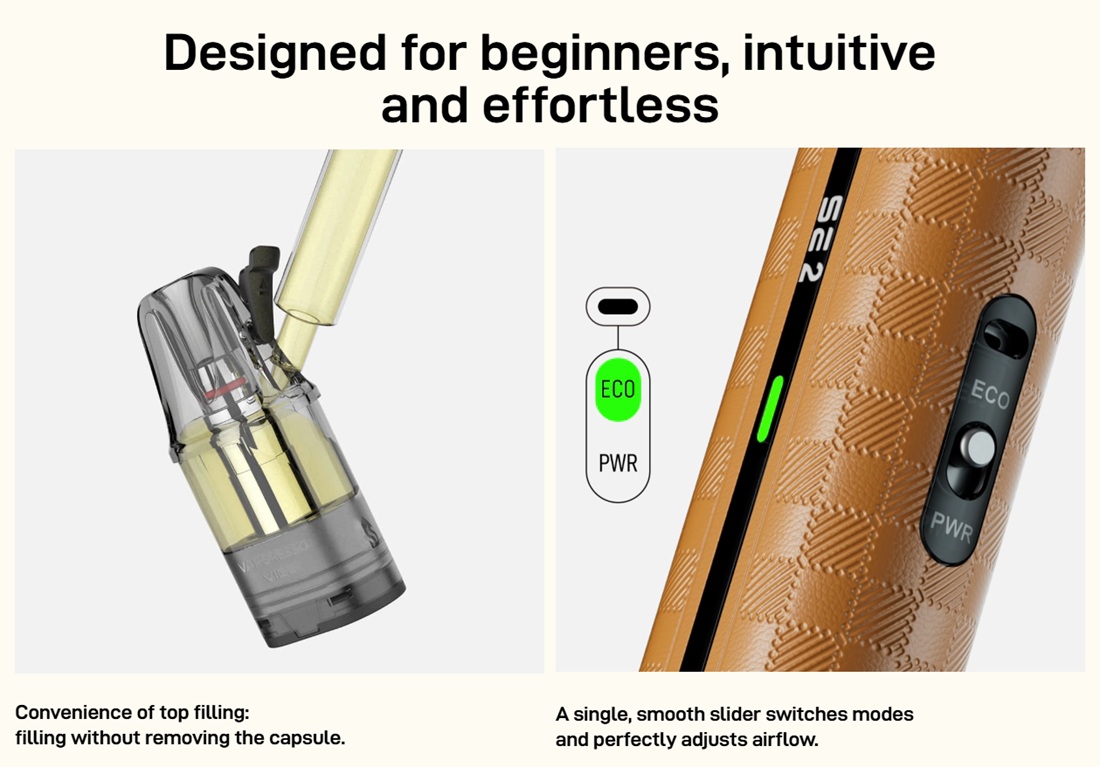 Grejači unutar ovih kertridža su u obliku dve mrežice, a Vibe uređaji nude dva režima rada: ECO i POWER.